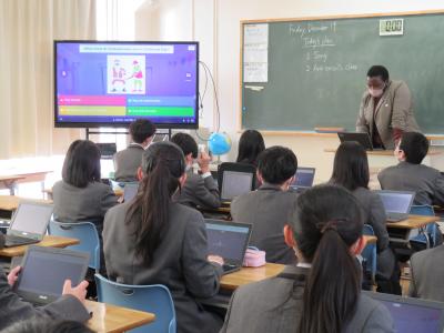1学年の英語の授業にて、オンライン英会話の体験を行いました。