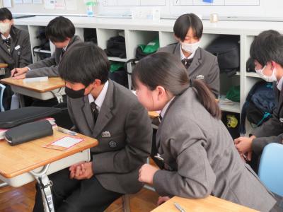本日6時間目に行われた、2学年の道徳の授業の様子です。